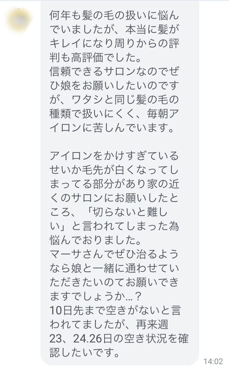 その上で髪の管理をお任せいただきました。