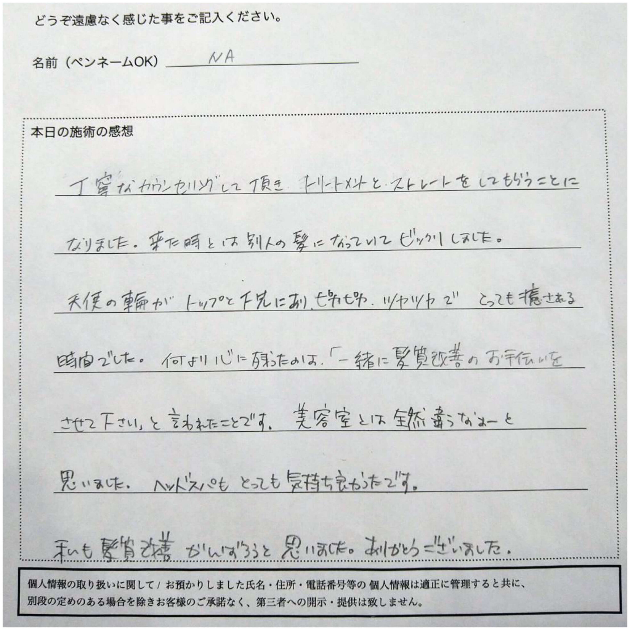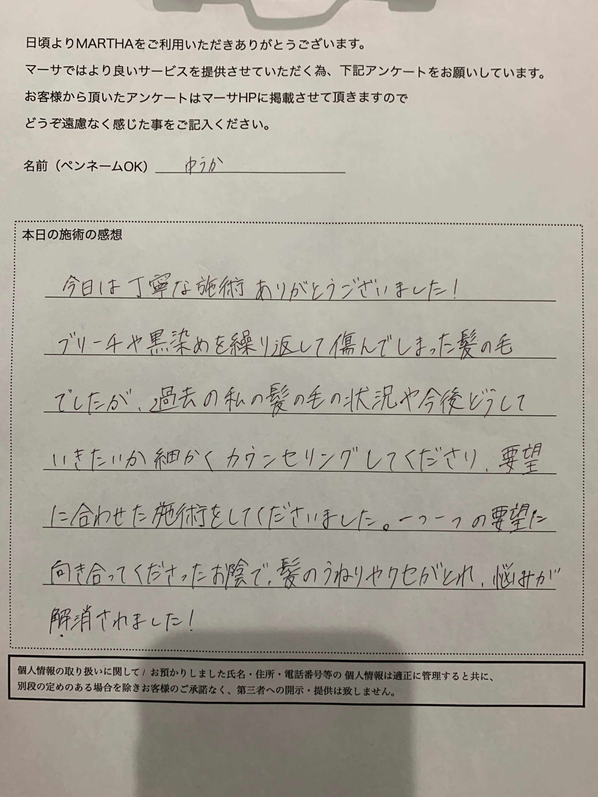 当店のトリートメントで