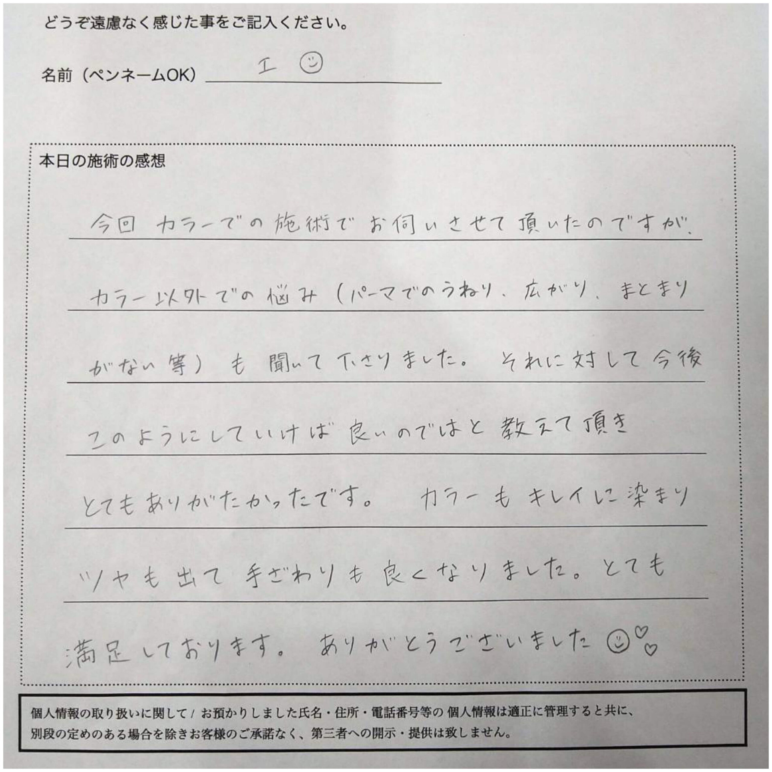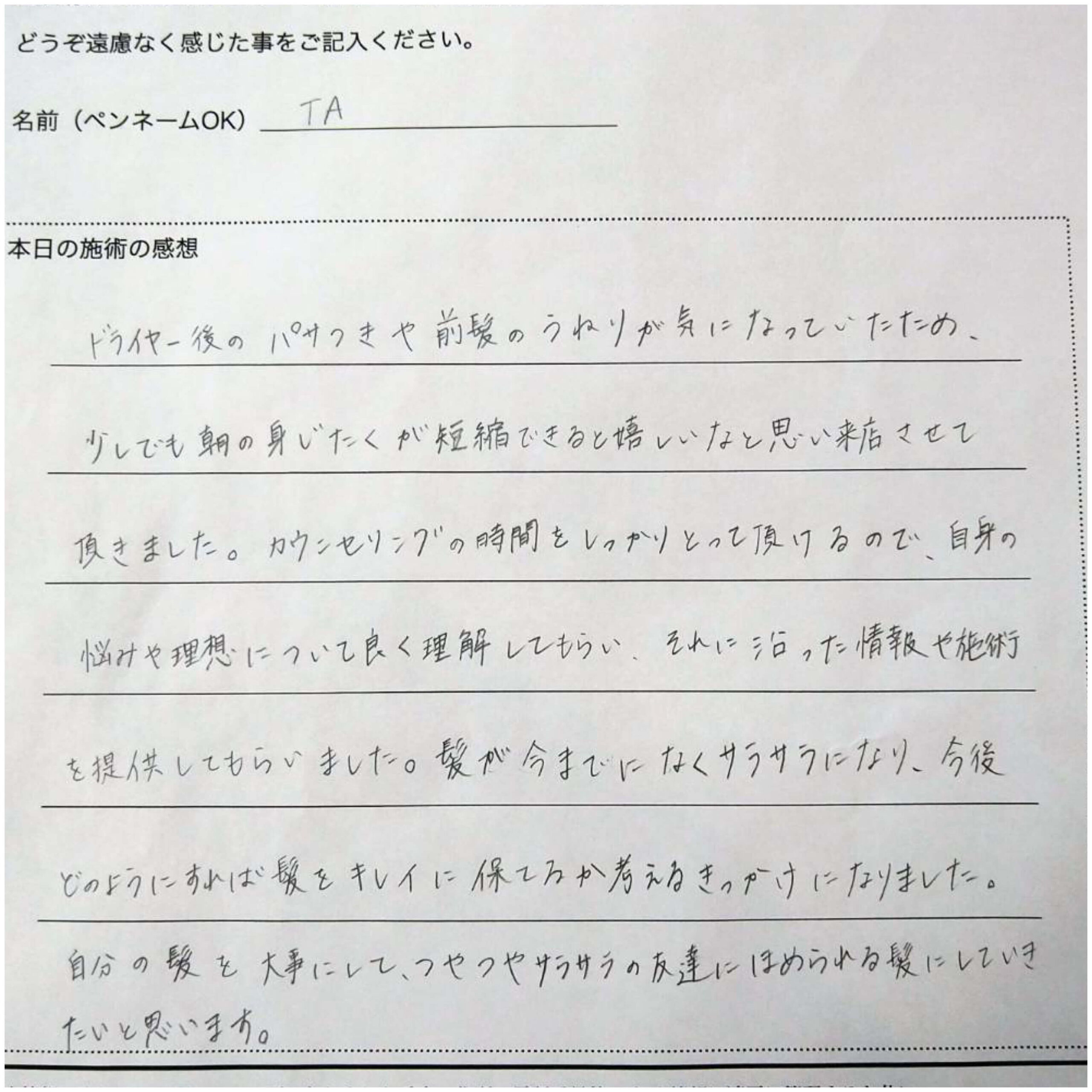 施術後、キレイにまとまる仕上がりとなりました。
